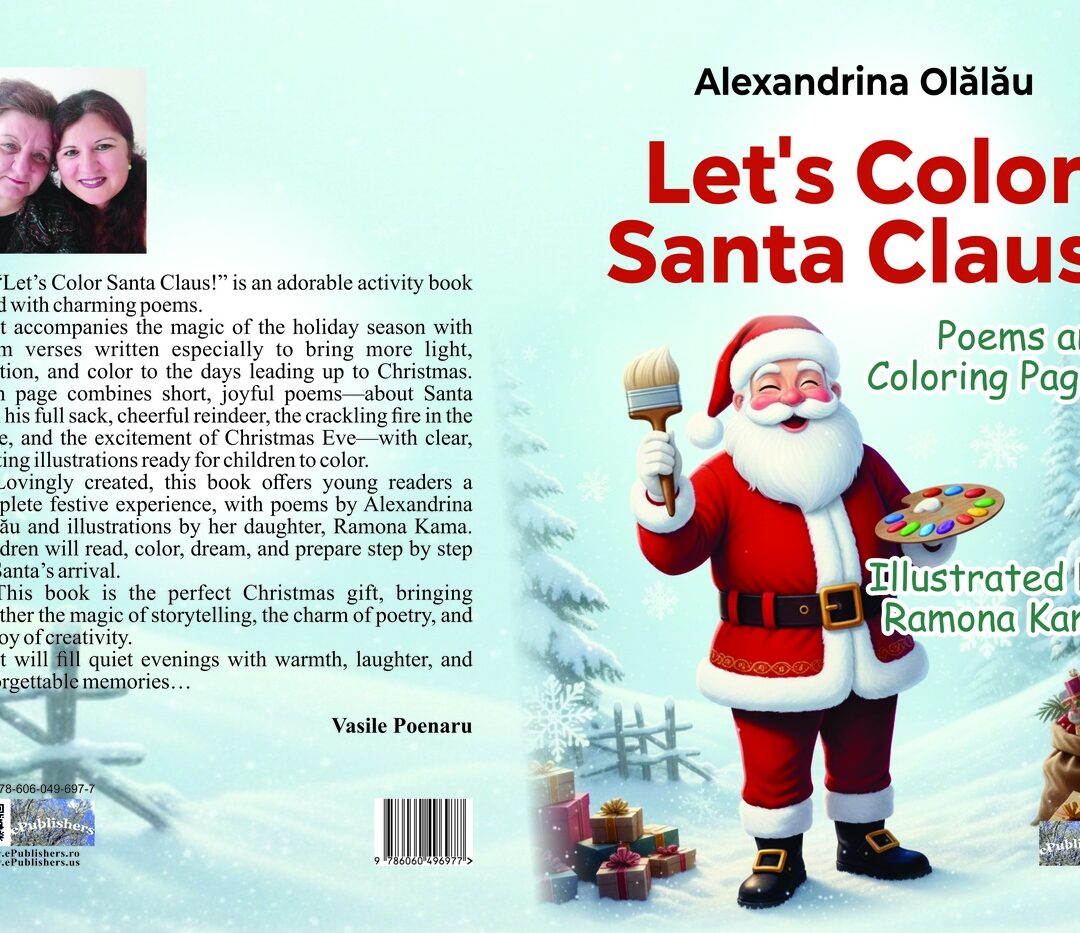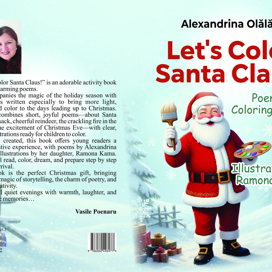 Lovingly created, this book offers young readers a complete festive experience, with poems by Alexandrina Olălău and illustrations by her daughter, Ramona Kama. Children will read, color, dream, and prepare step by step for Santa’s arrival.